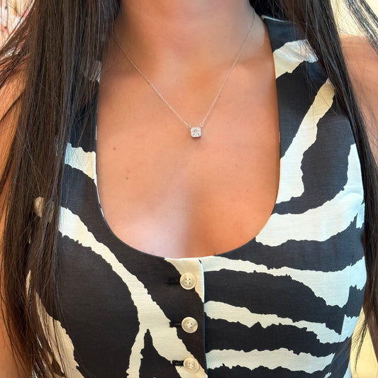 LIKE A DIAMOND SQUARE NECKLACE | Double White Rhodium Plated