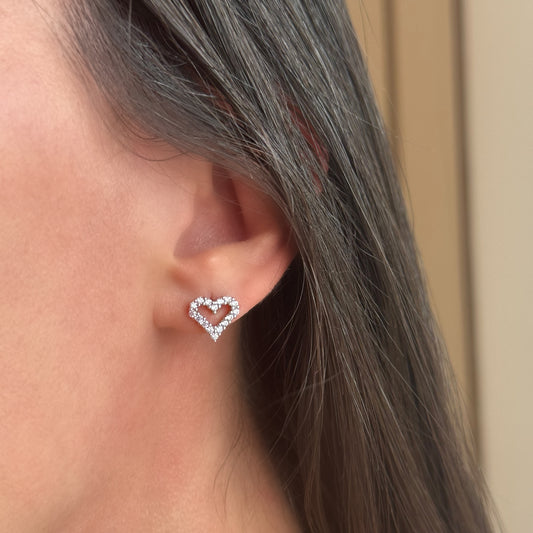 LOVE OPEN HEART EARRINGS | White Rhodium Plated
