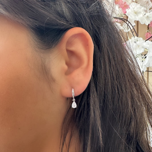 MINIMALIST DROP HOOPS | White Rhodium Plated