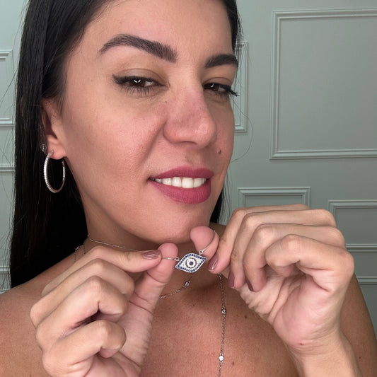 BLUE EVIL EYE NECKLACE | White Rhodium Plated