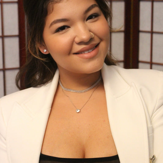 CRYSTAL HEART STUD EARRINGS | Double White Rhodium Plated