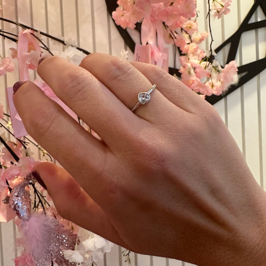 CRYSTAL HEART RING | Fourfold White Rhodium Plated