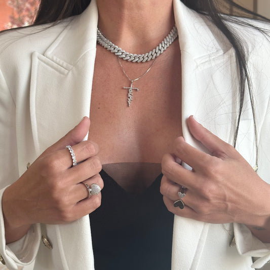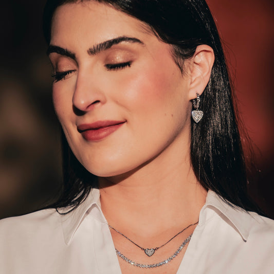 HEART STUD NECKLACE | Double White Rhodium Plated
