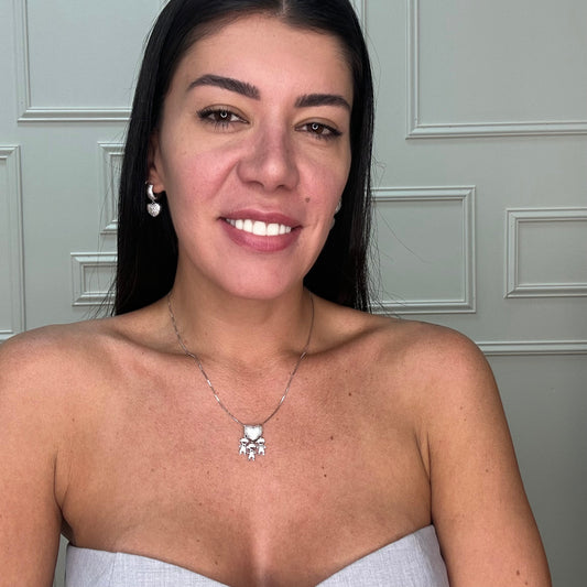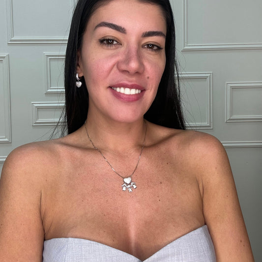 2 GIRLS & 1 BOY PENDANT NECKLACE | Double White Rhodium Plated