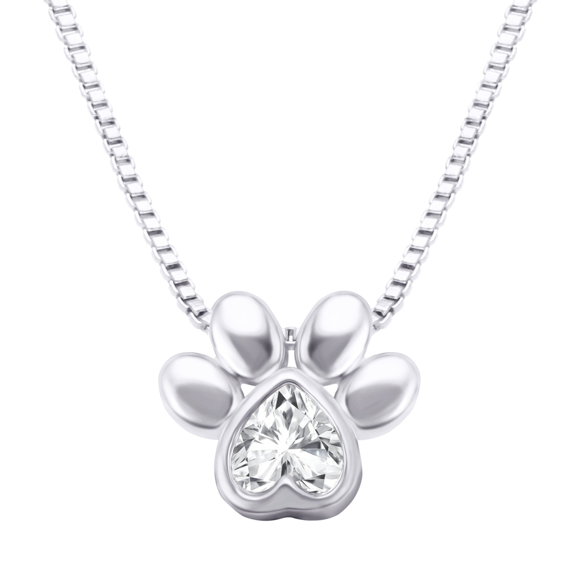 - Delicate paw design with heart-shaped zirconia center in silver finish