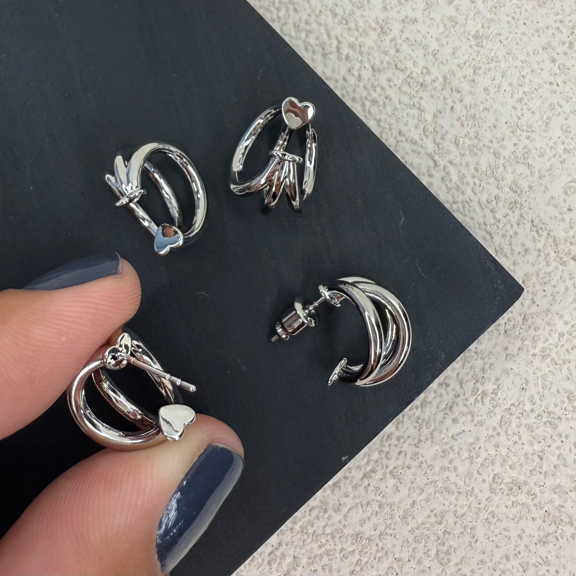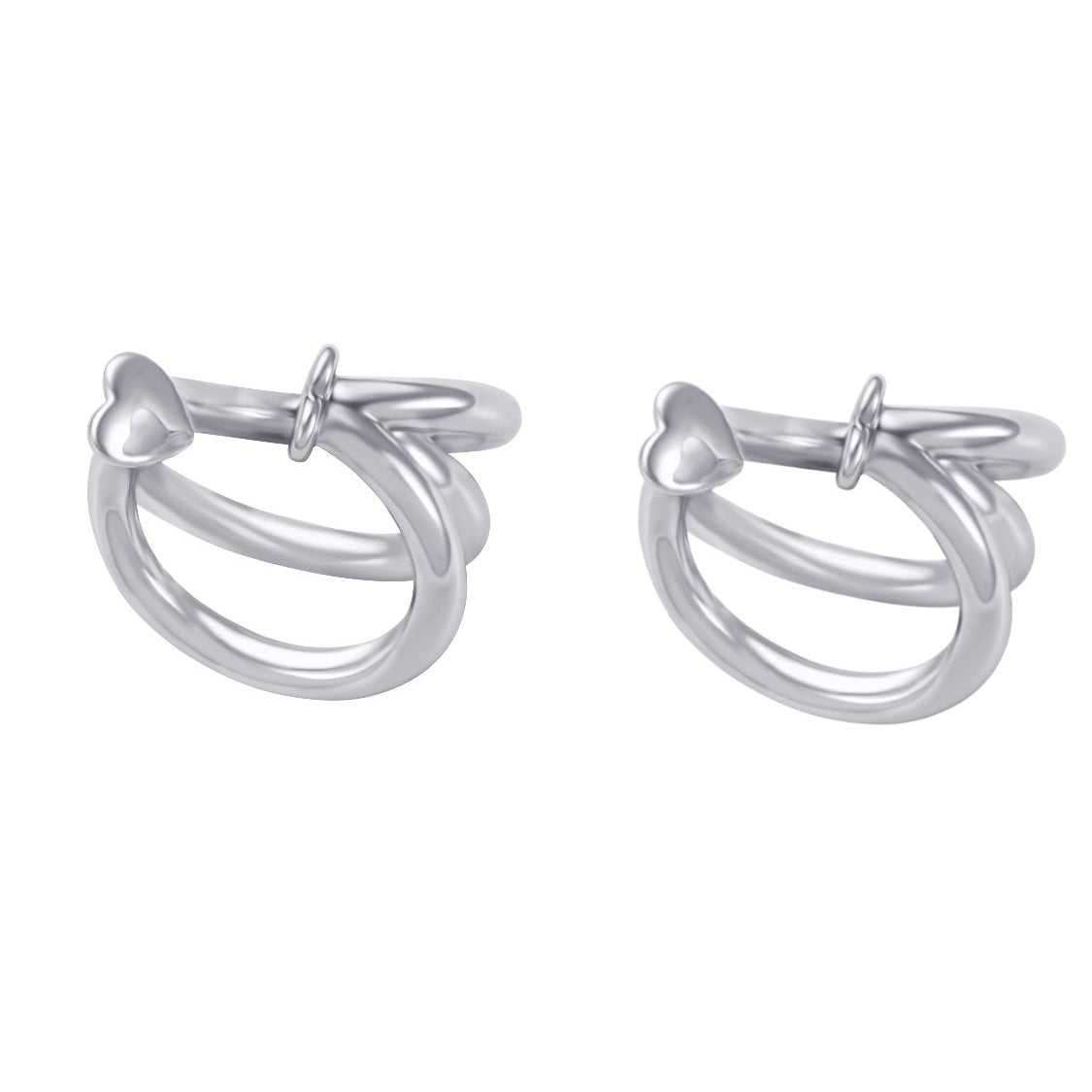 The AMORA Ear Cuff in sophisticated white rhodium-plated finish brings romance with attitude— three smooth lines that curve gracefully around your ear, ending in delicate heart details. No piercing required, just effortless style that makes a subtle statement in cool silver tones.