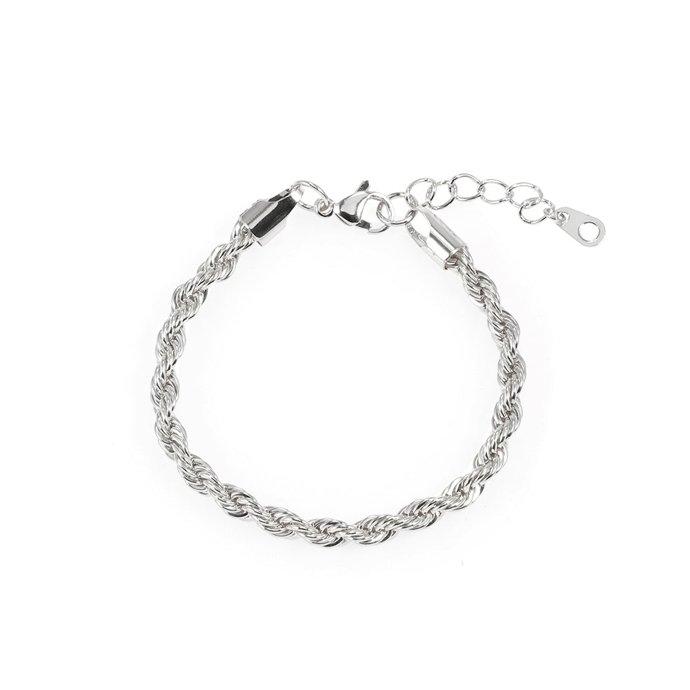 The CIRA Bracelet in sophisticated white rhodium-plated finish proves that the most beautiful details are often the most intricate ones. This rope chain design catches light from every angle, creating depth and dimension that transforms the simplest outfit into something special with contemporary appeal.