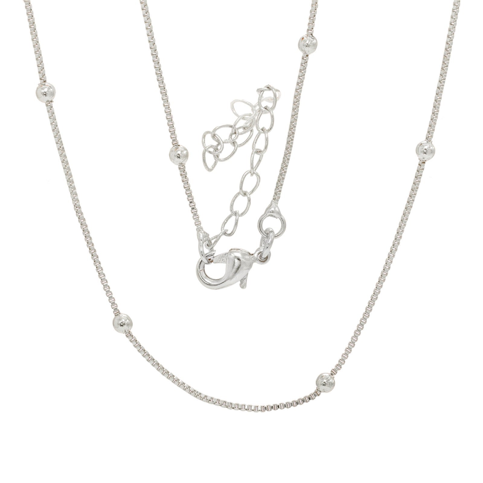 • White Rhodium plated chain with little balls.