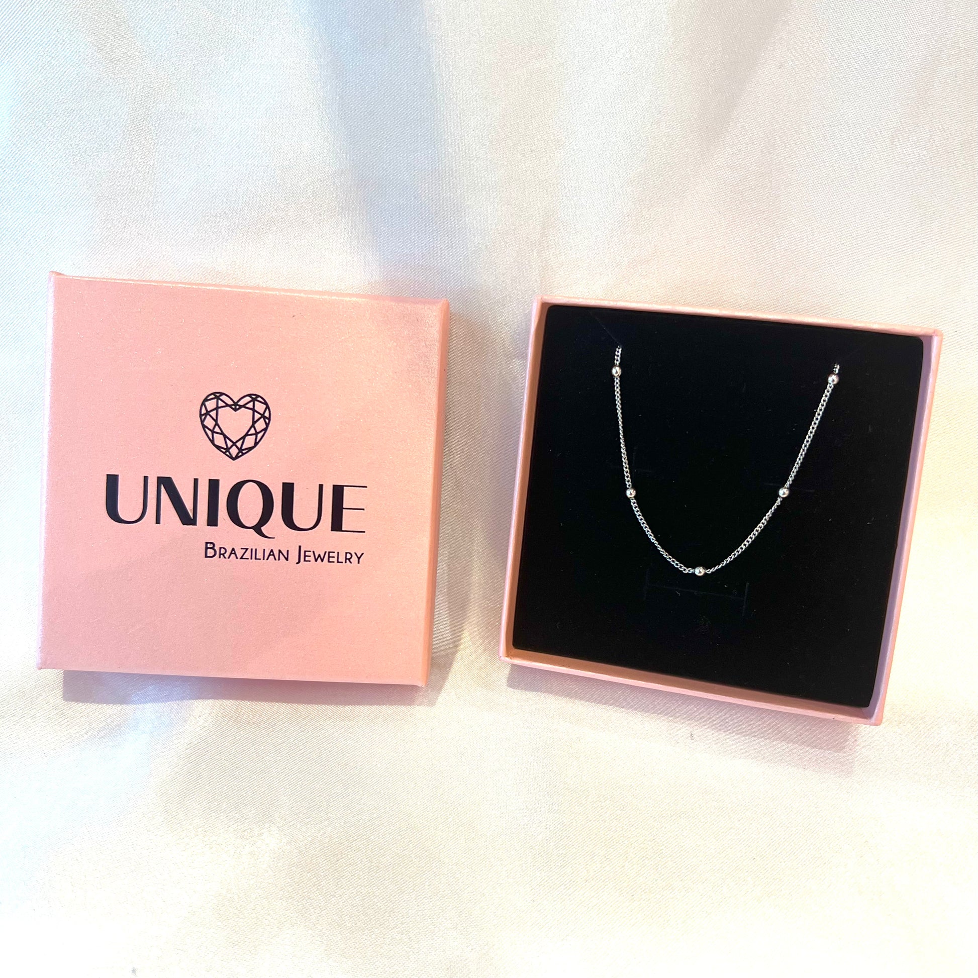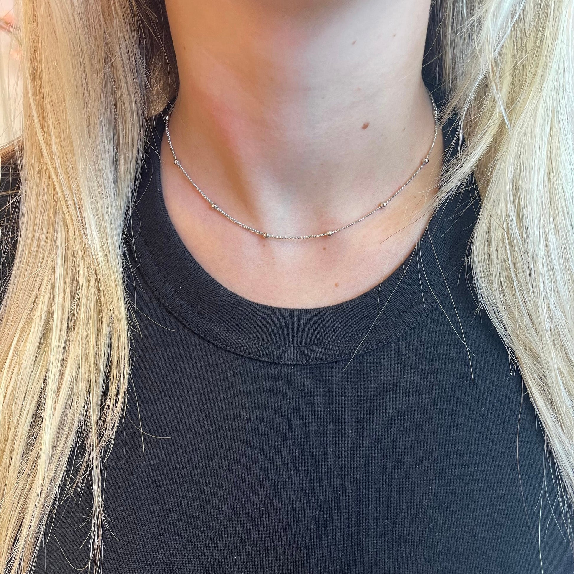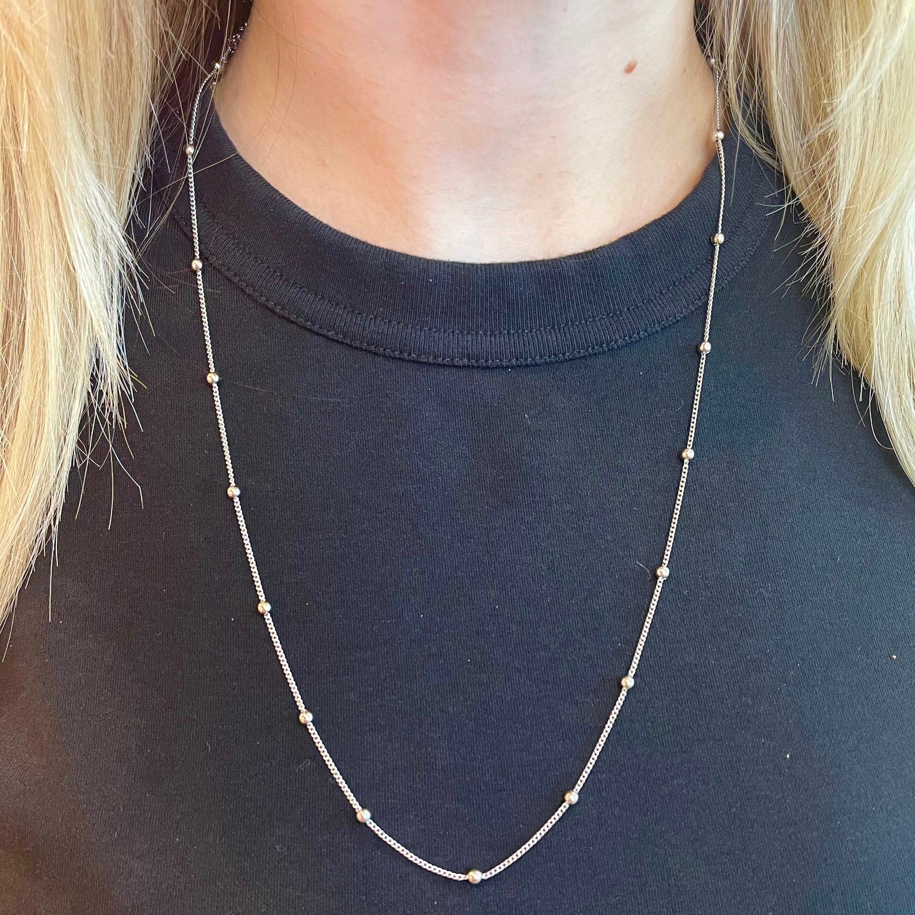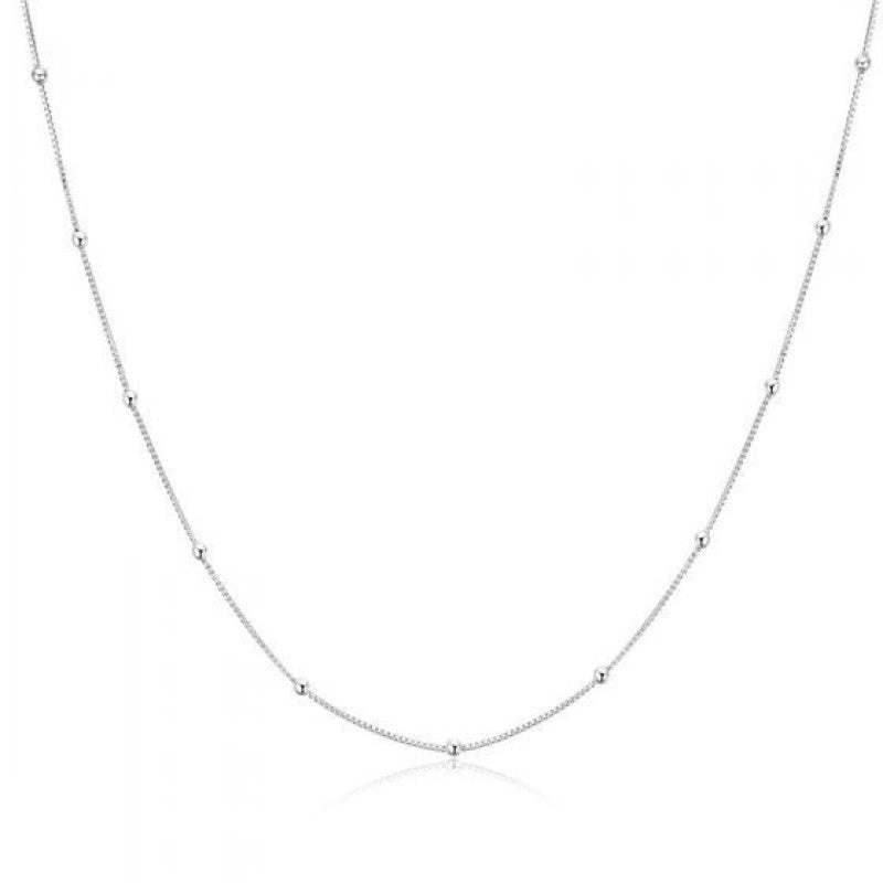 Little Balls Necklace Chain 24" Inches | White Rhodium Plated