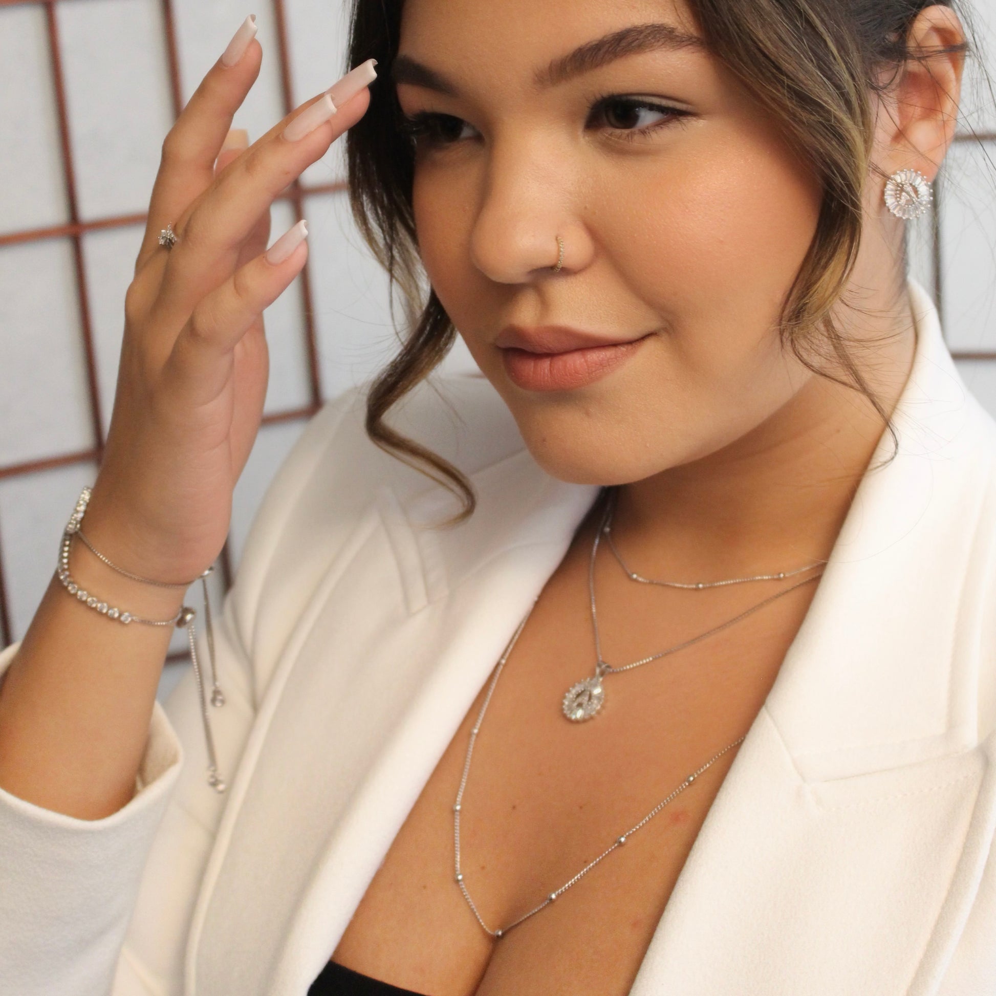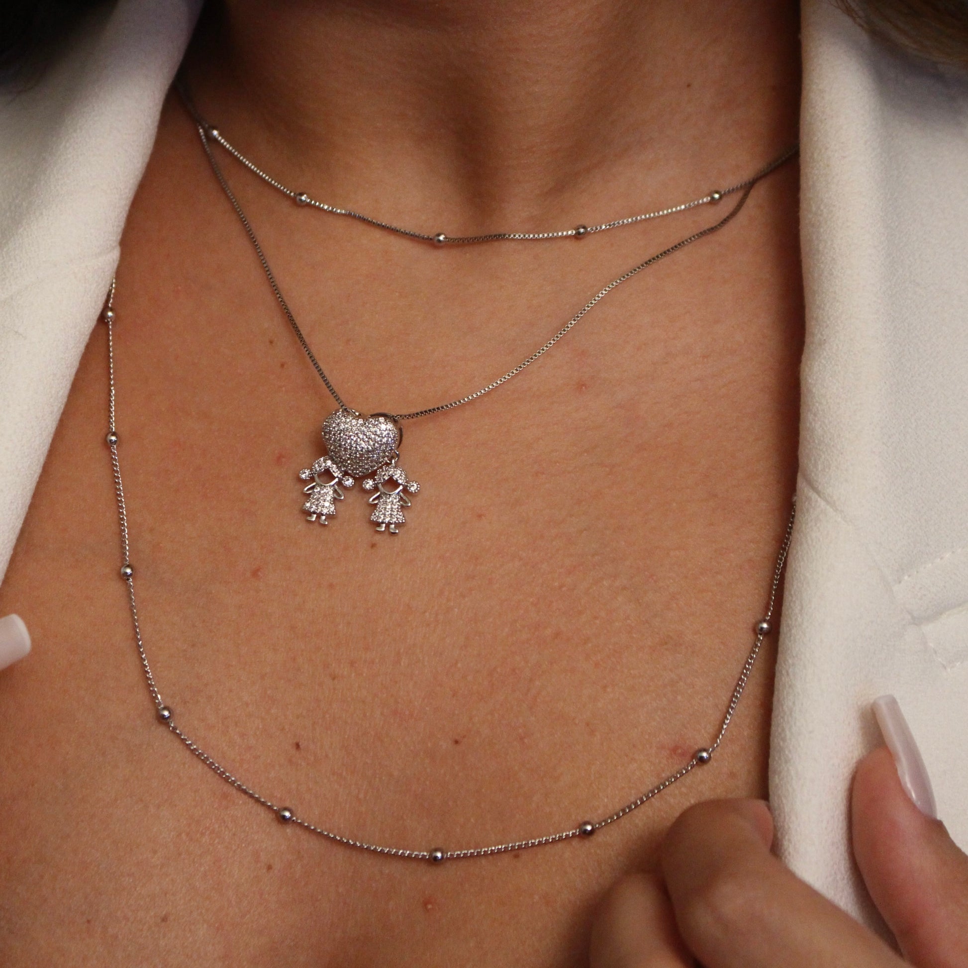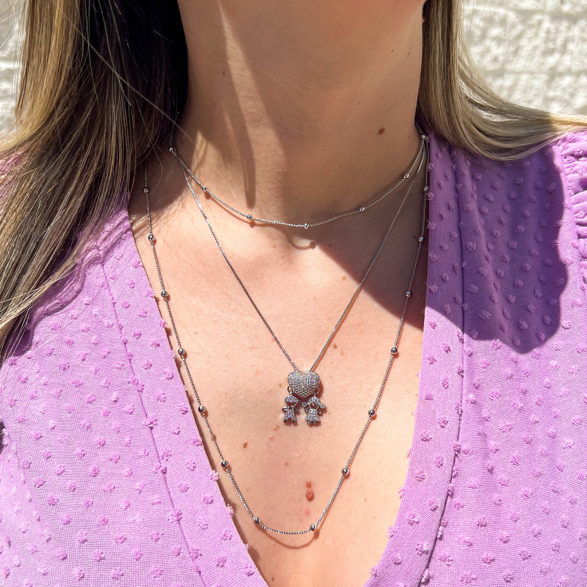 Little Balls Necklace Chain 24" Inches | White Rhodium Plated