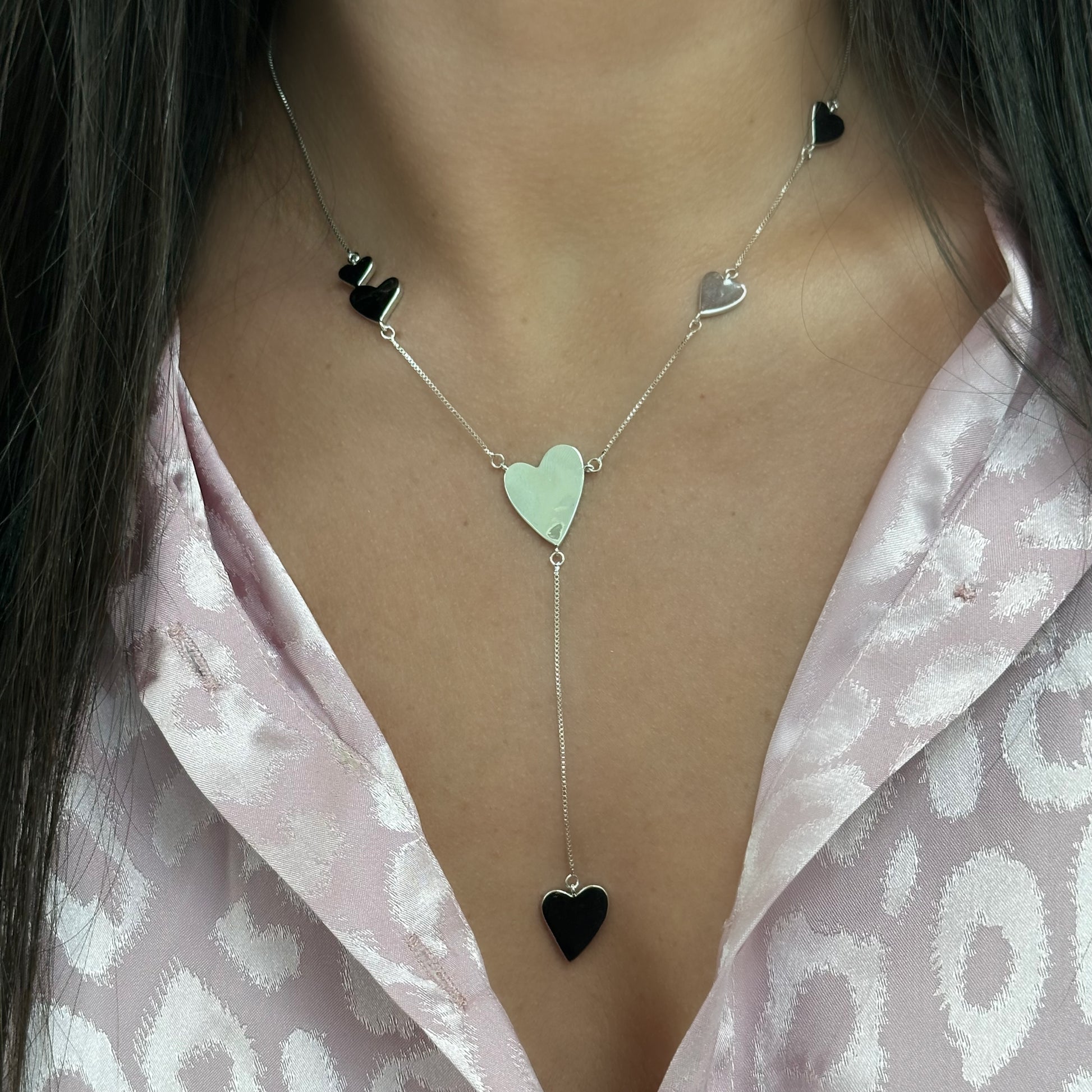 • Smooth heart pendants in the chain.