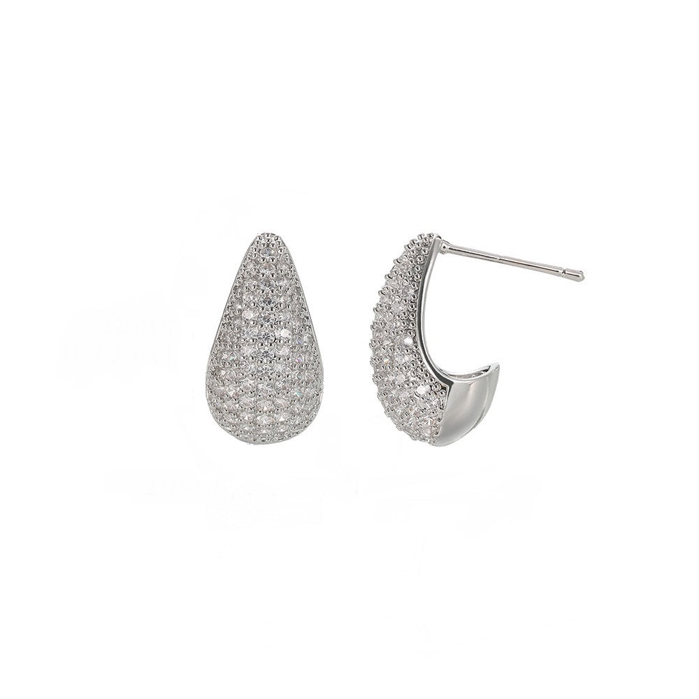 The LUNARA Earrings in sophisticated white rhodium-plated finish are designed for the woman who isn't afraid to shine. With their bold, curved silhouette fully adorned with sparkling zirconia, these silver earrings create an aura of sophisticated glamour that transforms any occasion.