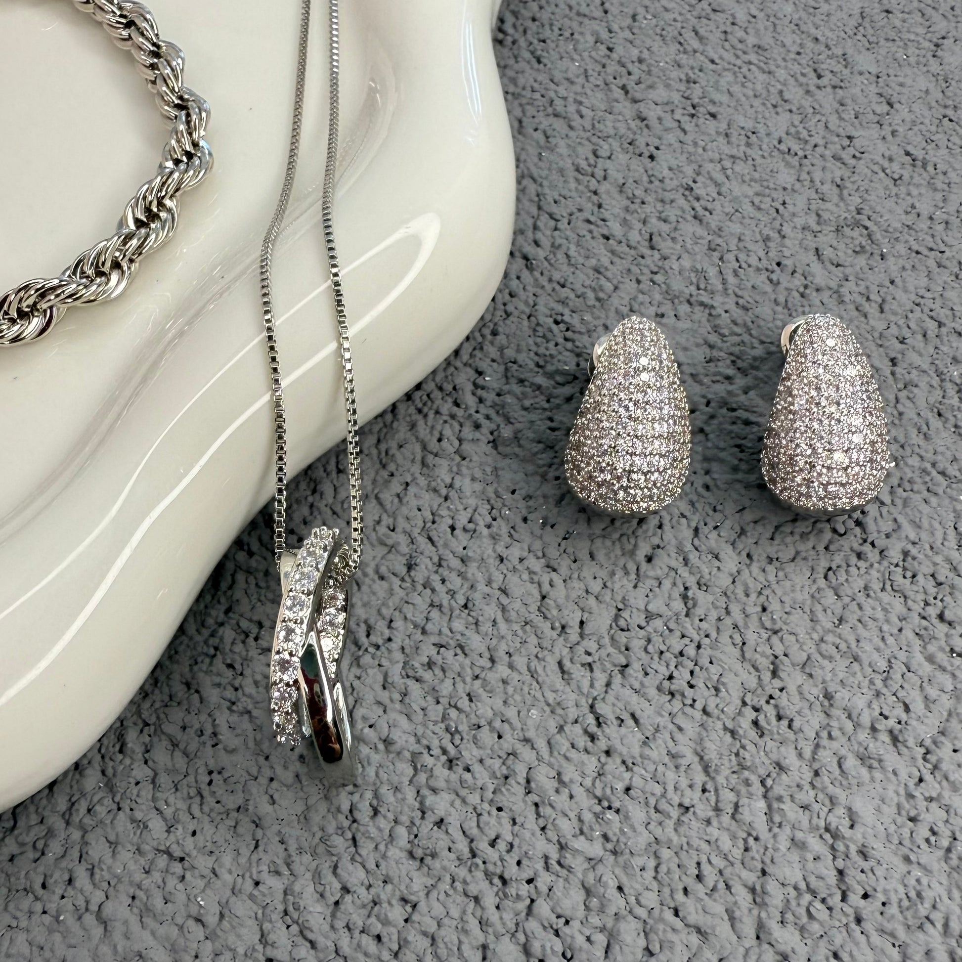 LUNARA Earrings | White Rhodium Plated