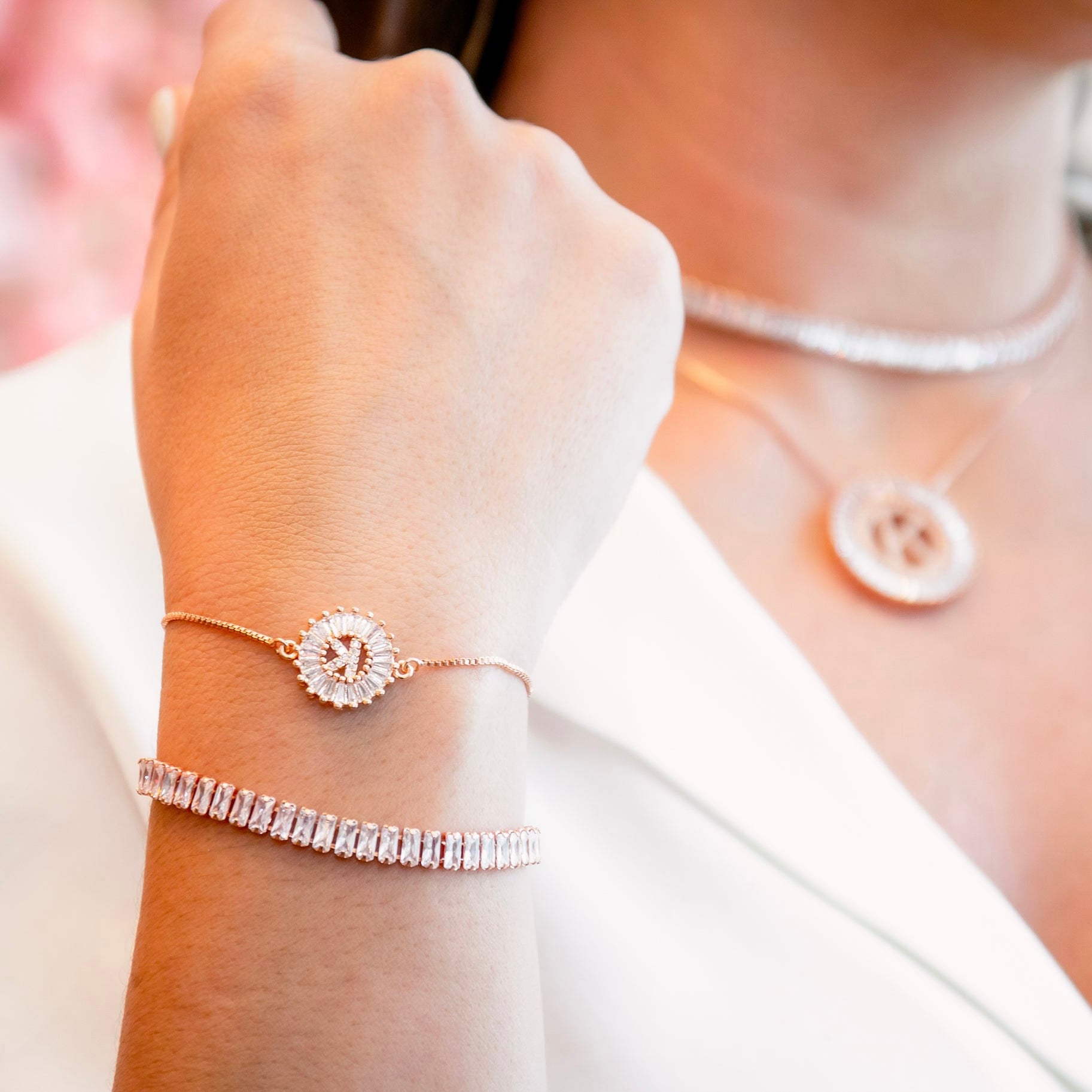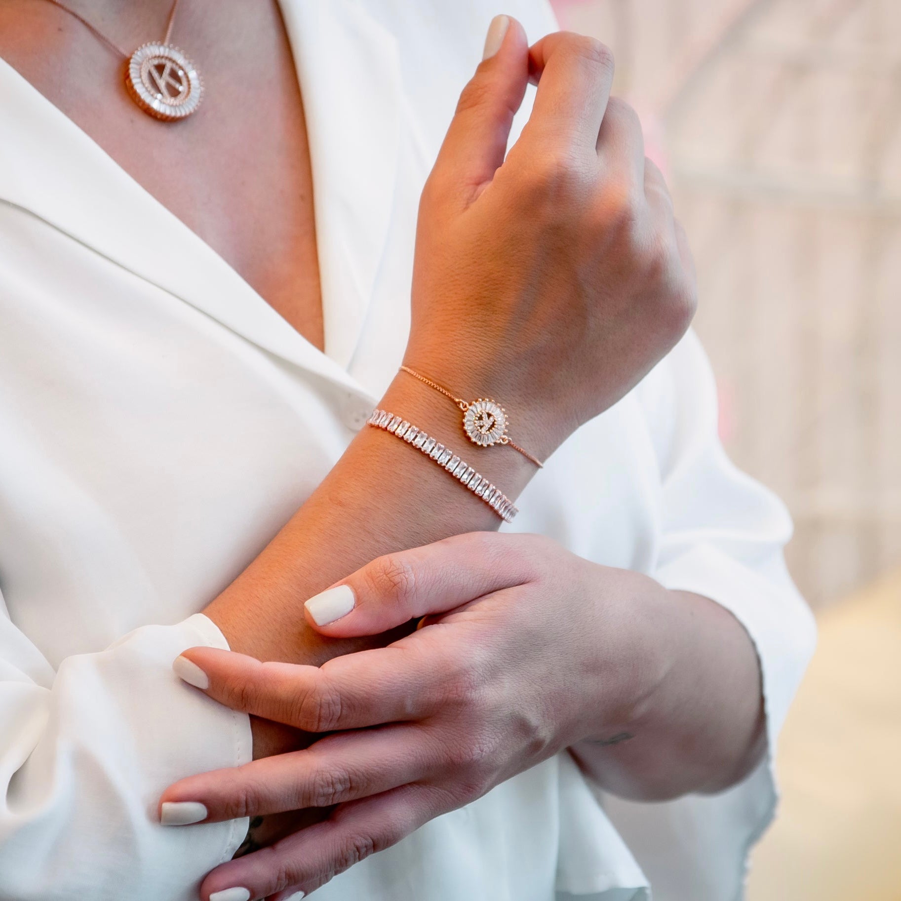 Whether worn alone as a subtle statement or paired with the matching necklace and earrings from the Unique Letter Collection, this bracelet adds charm, balance, and brilliance to any look. It's a beautiful reminder to center yourself — and to treat yourself with love.