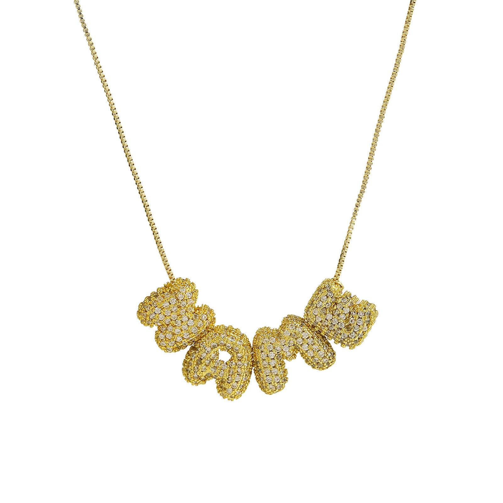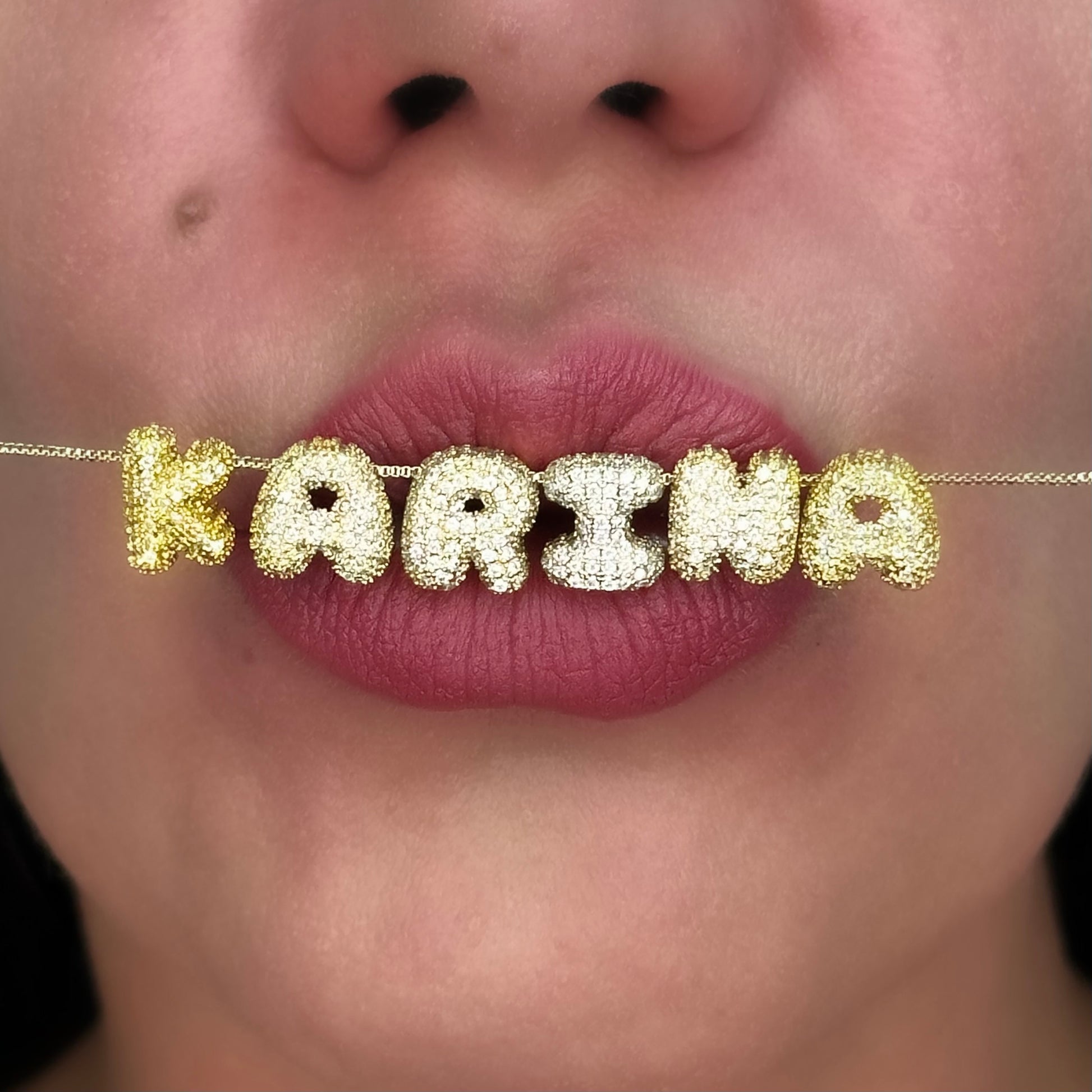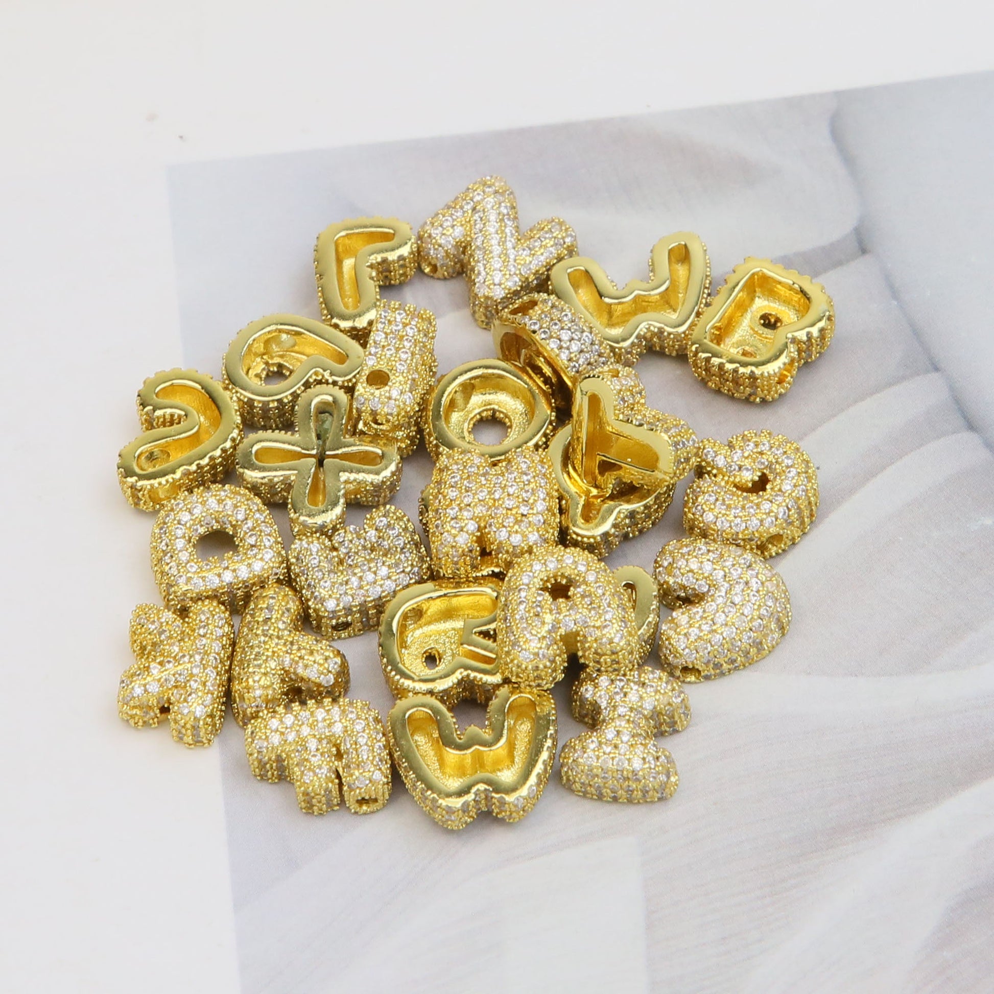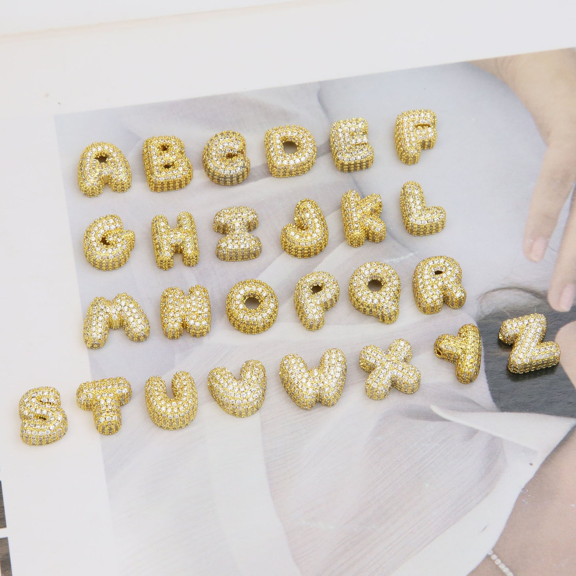 - Each letter is encrusted with cubic zirconia stones