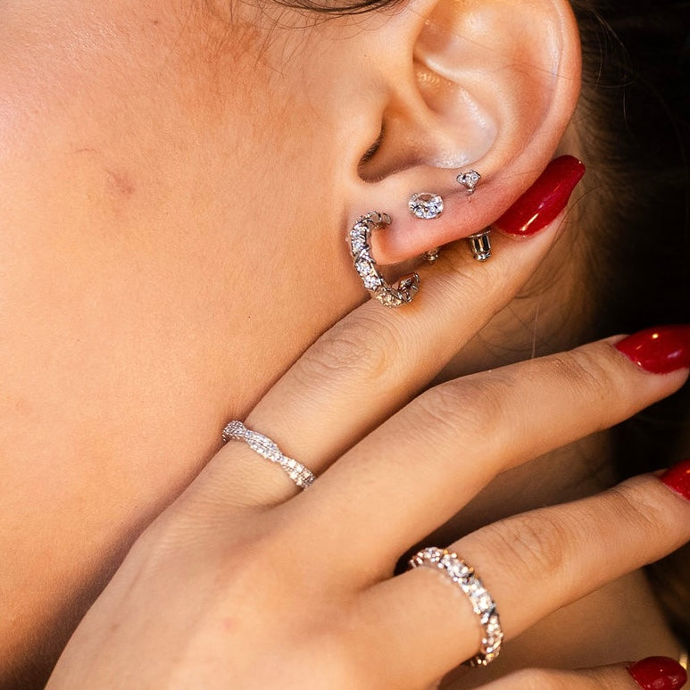 - Stackable design for personalized styling in premium rhodium-plated finish