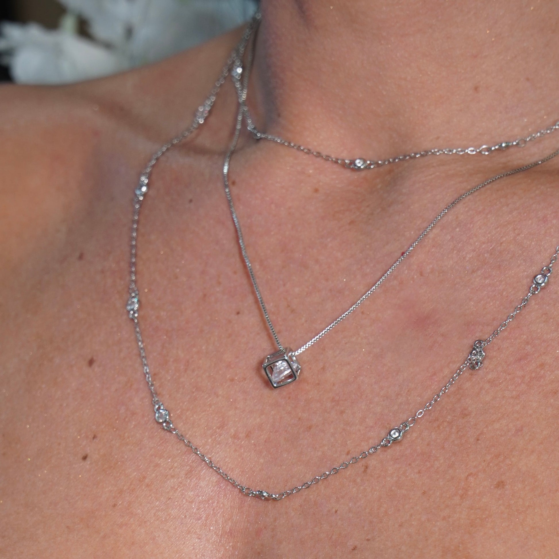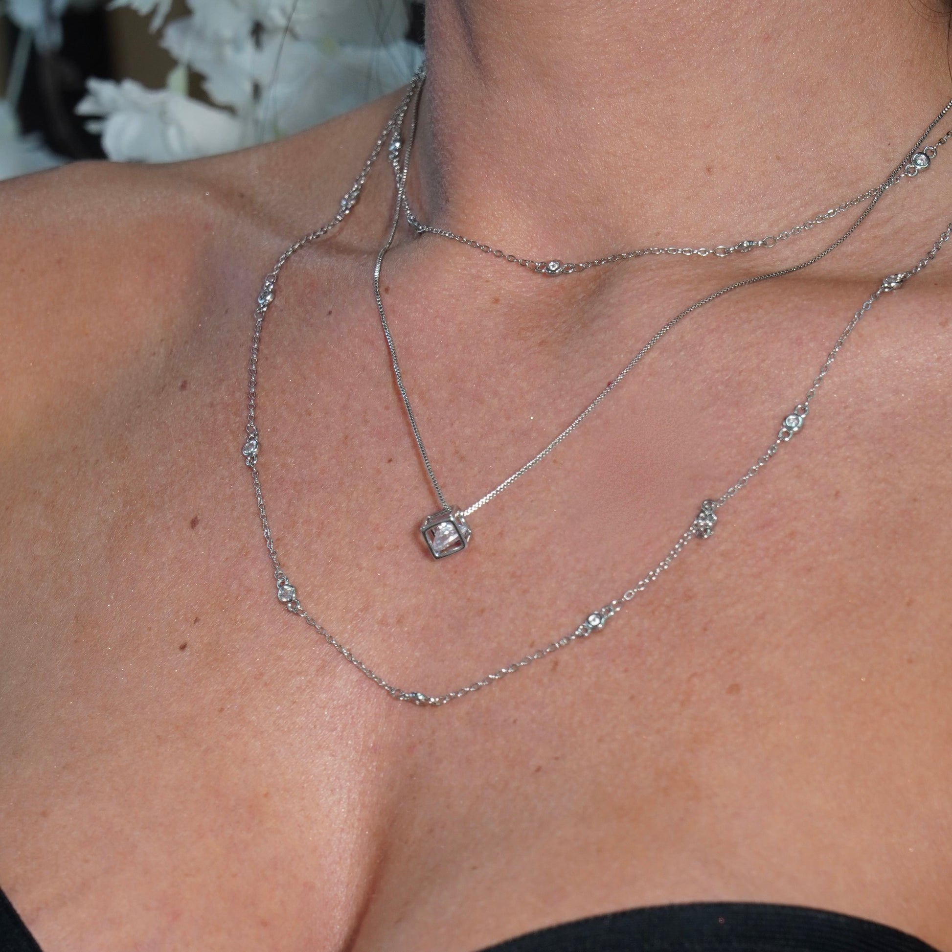 SQUARE STUD NECKLACE | White Rhodium Plated