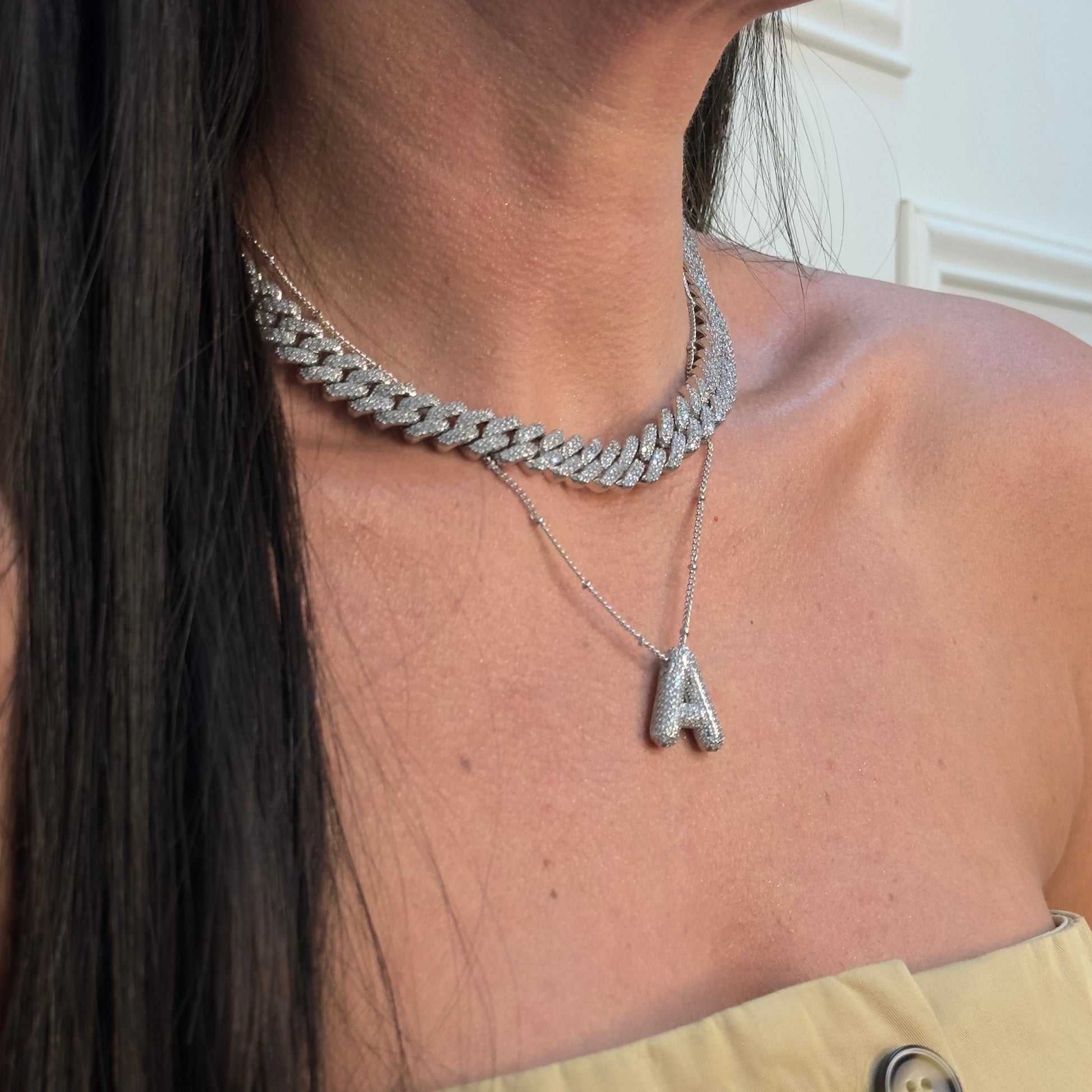 Studded Balloon Inicial Necklaces A - Z | White Rhodium PLATED